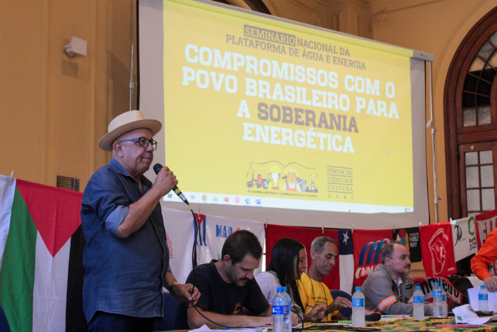 O Salão Nobre do Fórum de Ciência e Cultura da Universidade Federal do Rio de Janeiro (UFRJ), recebeu ontem (18), o Seminário Nacional “Compromissos com o povo brasileiro para a Soberania Energética”, organizado pela Plataforma Operaria e Camponesa de Água e Energia. O Seminário acontece como parte da programação da 6ª turma do curso de extensão e especialização “Energia e Sociedade no Capitalismo Contemporâneo”, resultado de uma parceria entre o Movimento dos Atingidos por Barragens (MAB), a UFRJ – por meio do Instituto de Pesquisa e Planejamento Urbano e Regional (IPPUR) – e a Plataforma.