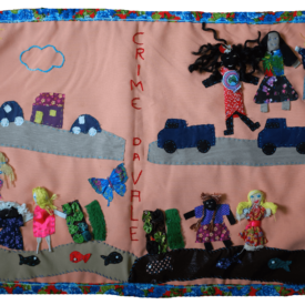 Os crimes cometidos pela Vale despejaram uma quantidade muito grande de lama contaminada com rejeitos da mineração. Essa lama tóxica percorreu quilômetros pelos rios, afetando a diversidade de peixes, e ficou depositada no solo das comunidades, afetando as plantações de muitas famílias - uma parte ficou no fundo dos rios e outra seguiu o trajeto até o oceano. Alguns sinais e sintomas foram identificados nos atingidos ao longo da bacia do Rio Doce. Apesar da falta de estudos que consigam comprovar que o aumento dessas doenças seja motivado pela contaminação, o número de casos e a repetição em localidades diferentes trazem a suspeita de que estão relacionados com o contato da população com a lama oriunda rejeito da mineração. Por isso, a importância dos estudos que comprovem o dano e atestem a segurança do ambiente, com informações sobre a qualidade da terra, do ar e da água. A arpillera foi construída pelas mulheres da comunidade de Mário Campos, após o rompimento da barragem de rejeitos de mineração da Mina do Córrego do Feijão, em Brumadinho, em 25 de janeiro de 2019. Esta Arpillera retrata a preocupação com a saúde das crianças, a impossibilidade da pesca, a diferença na água do Rio Paraopeba antes e após o rompimento e a diferença de tráfego nas comunidades antes e após o rompimento.