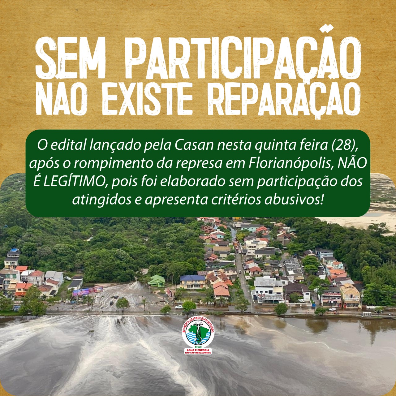 Para o MAB, edital lançado nesta quinta-feira (28) pela empresa responsável pela barragem rompida na capital catarinense não dá conta de reparar danos sofridos pela comunidade
